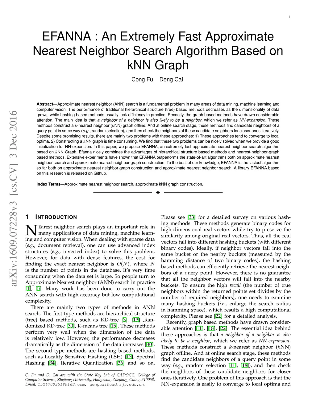 EFANNA : An Extremely Fast Approximate Nearest Neighbor Search Algorithm Based on kNN Graph