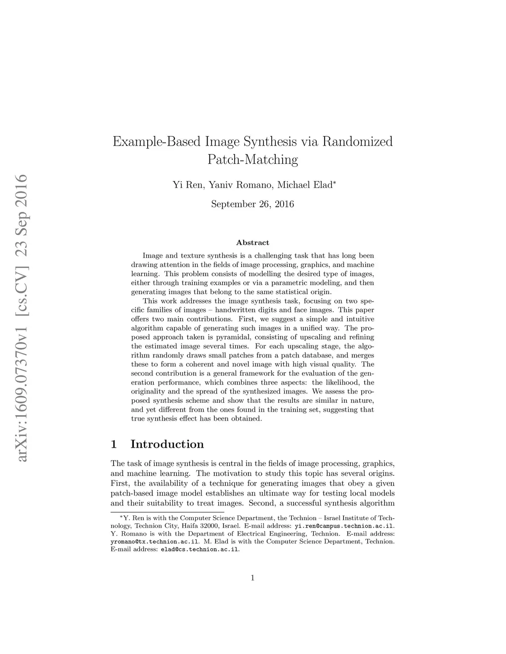 Example-Based Image Synthesis via Randomized Patch-Matching