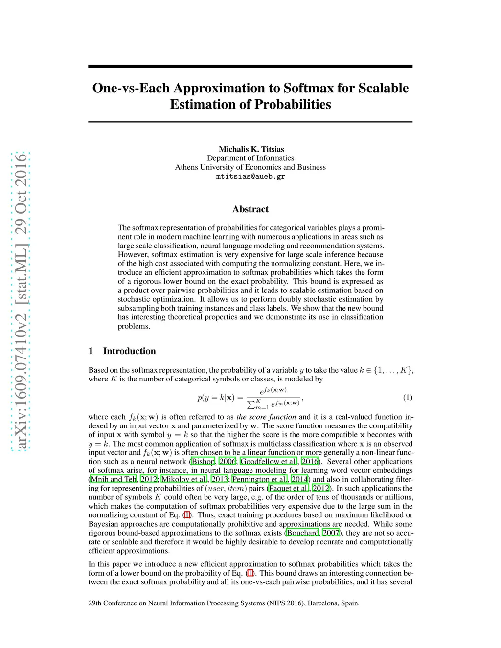 One-vs-Each Approximation to Softmax for Scalable Estimation of