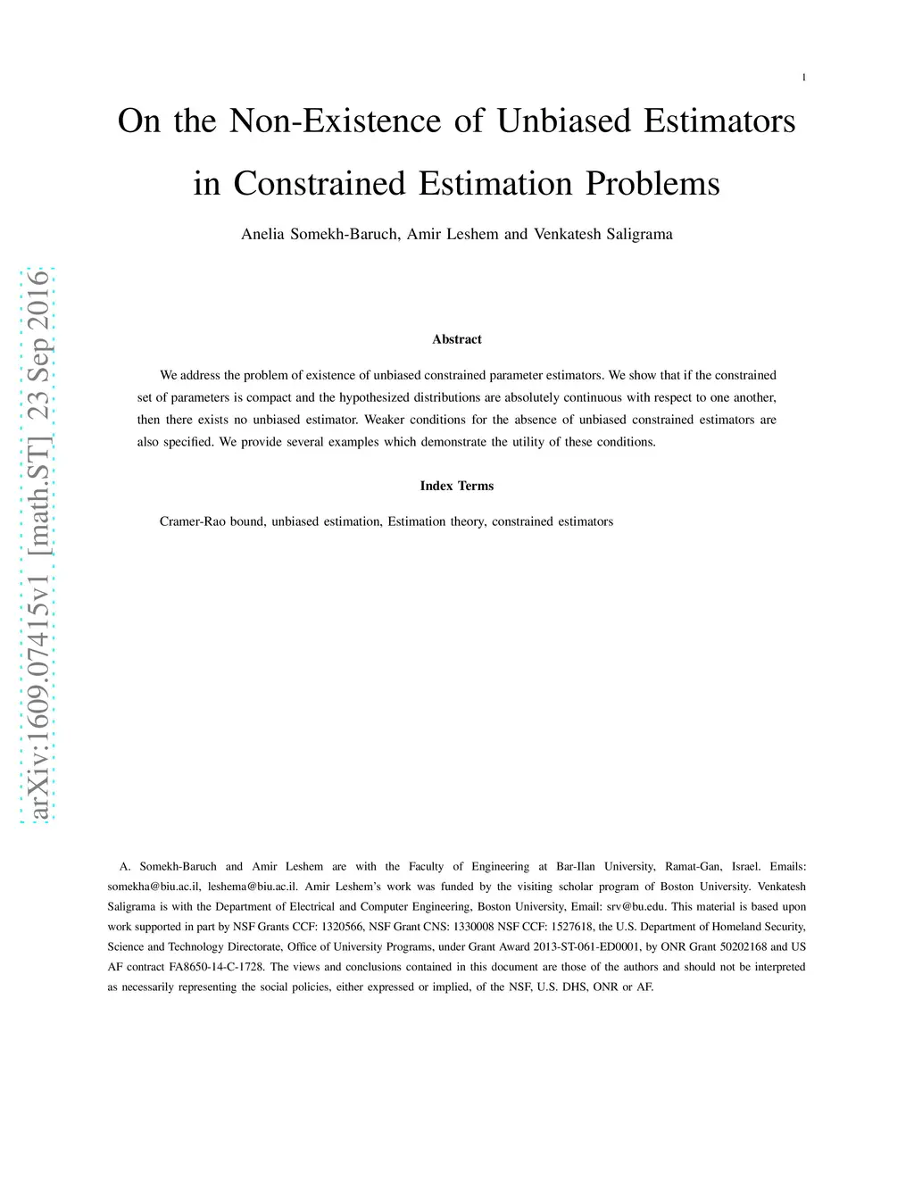 On the Non-Existence of Unbiased Estimators in Constrained Estimation