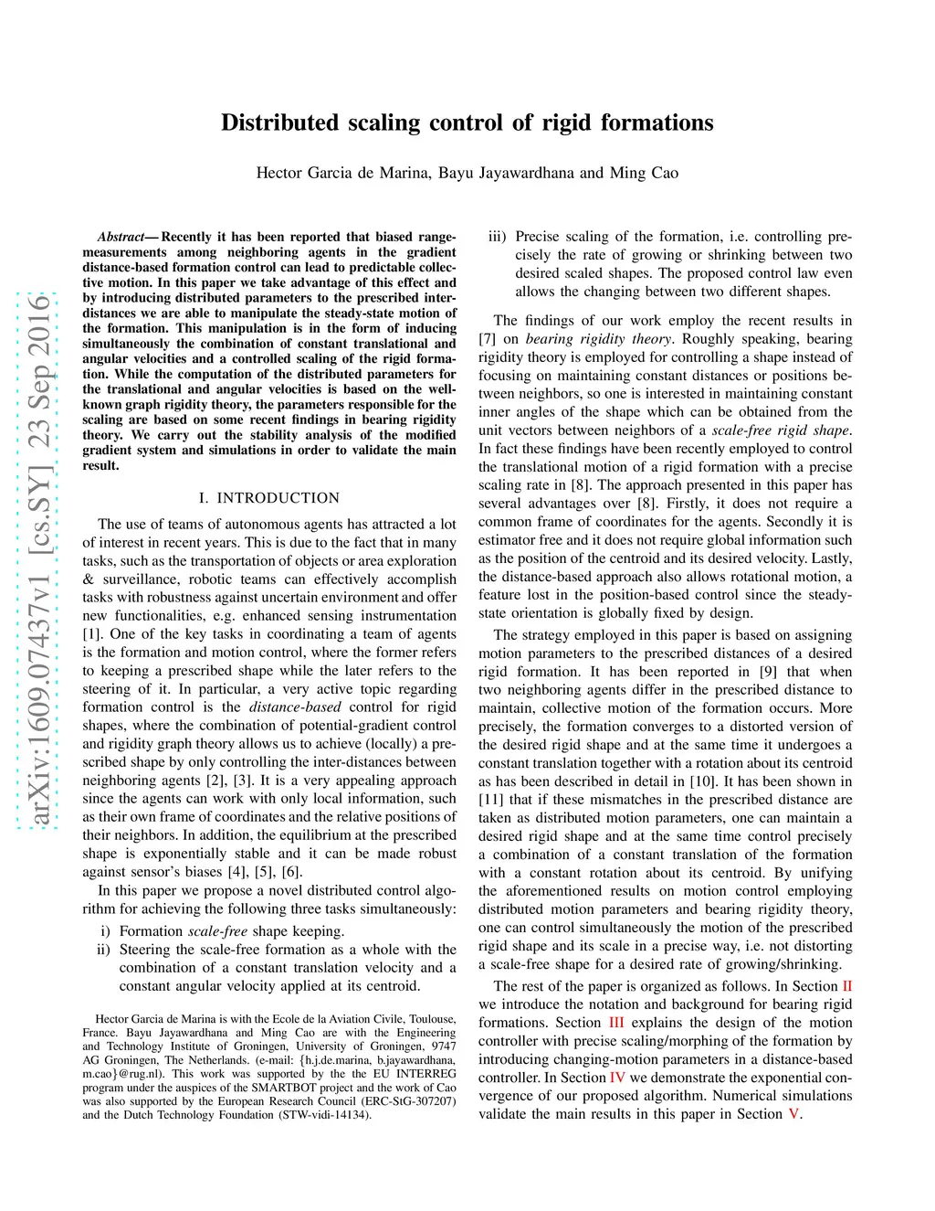 Recently it has been reported that biased range-measurements among neighboring agents in the gradient distance-based formation control can lead to predictable collective motion. In this paper we take advantage of this effect and by introducing distributed parameters to the prescribed inter-distances we are able to manipulate the steady-state motion of the formation. This manipulation is in the form of inducing simultaneously the combination of constant translational and angular velocities and a controlled scaling of the rigid formation. While the computation of the distributed parameters for the translational and angular velocities is based on the well-known graph rigidity theory, the parameters responsible for the scaling are based on some recent findings in bearing rigidity theory. We carry out the stability analysis of the modified gradient system and simulations in order to validate the main result.