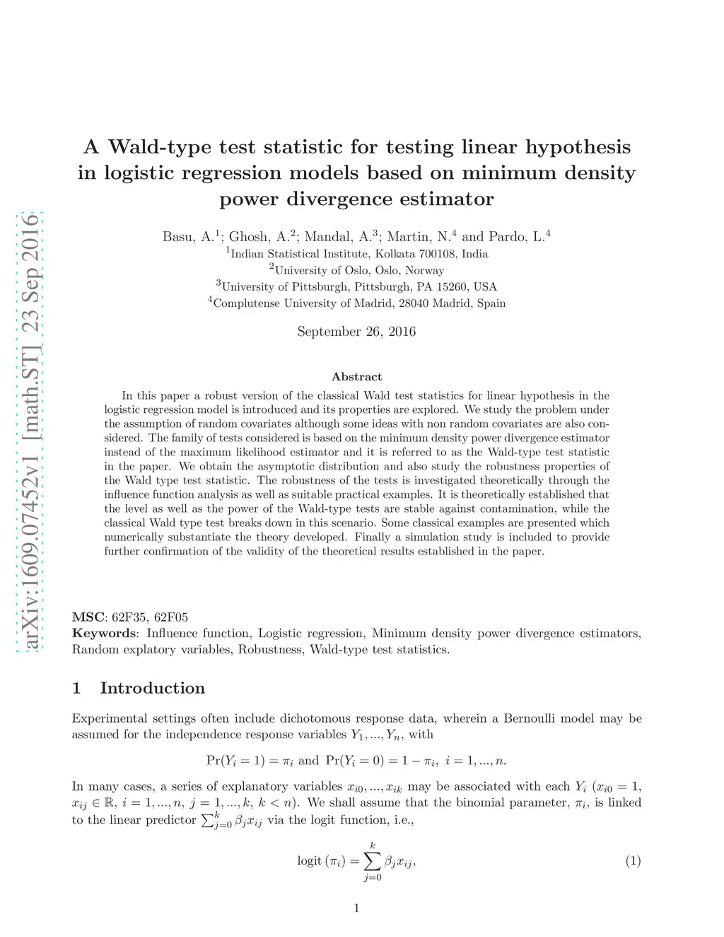 A Wald-type test statistic for testing linear hypothesis in logistic