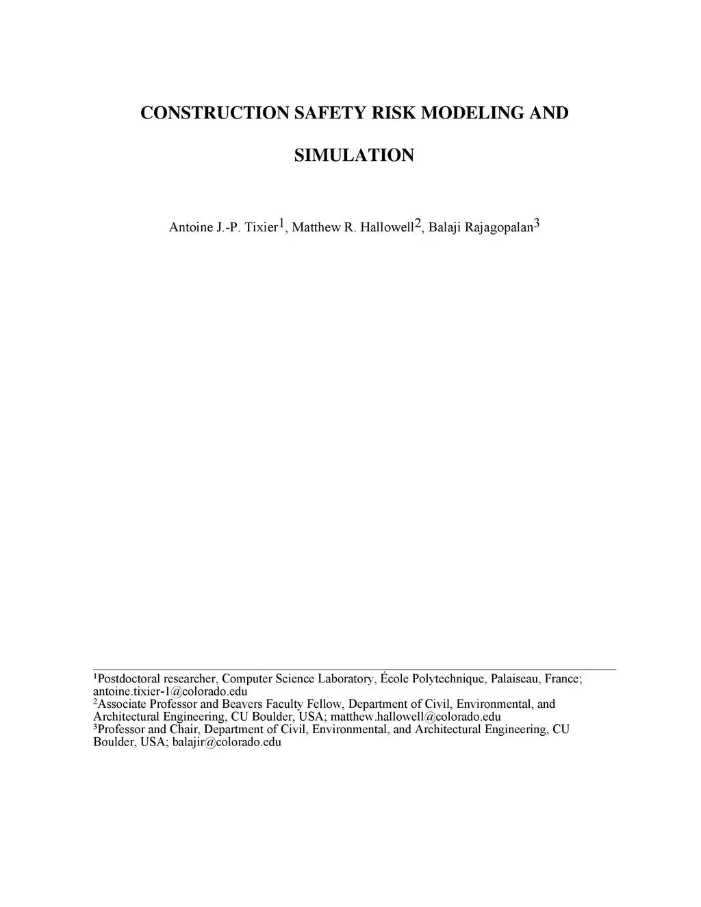 By building on a recently introduced genetic-inspired attribute-based conceptual framework for safety risk analysis, we propose a novel methodology to compute construction univariate and bivariate construction safety risk at a situational level. Our fully data-driven approach provides construction practitioners and academicians with an easy and automated way of extracting valuable empirical insights from databases of unstructured textual injury reports. By applying our methodology on an attribute and outcome dataset directly obtained from 814 injury reports, we show that the frequency-magnitude distribution of construction safety risk is very similar to that of natural phenomena such as precipitation or earthquakes. Motivated by this observation, and drawing on state-of-the-art techniques in hydroclimatology and insurance, we introduce univariate and bivariate nonparametric stochastic safety risk generators, based on Kernel Density Estimators and Copulas. These generators enable the user to produce large numbers of synthetic safety risk values faithfully to the original data, allowing safetyrelated decision-making under uncertainty to be grounded on extensive empirical evidence. Just like the accurate modeling and simulation of natural phenomena such as wind or streamflow is indispensable to successful structure dimensioning or water reservoir management, we posit that improving construction safety calls for the accurate modeling, simulation, and assessment of safety risk. The underlying assumption is that like natural phenomena, construction safety may benefit from being studied in an empirical and quantitative way rather than qualitatively which is the current industry standard. Finally, a side but interesting finding is that attributes related to high energy levels and to human error emerge as strong risk shapers on the dataset we used to illustrate our methodology.