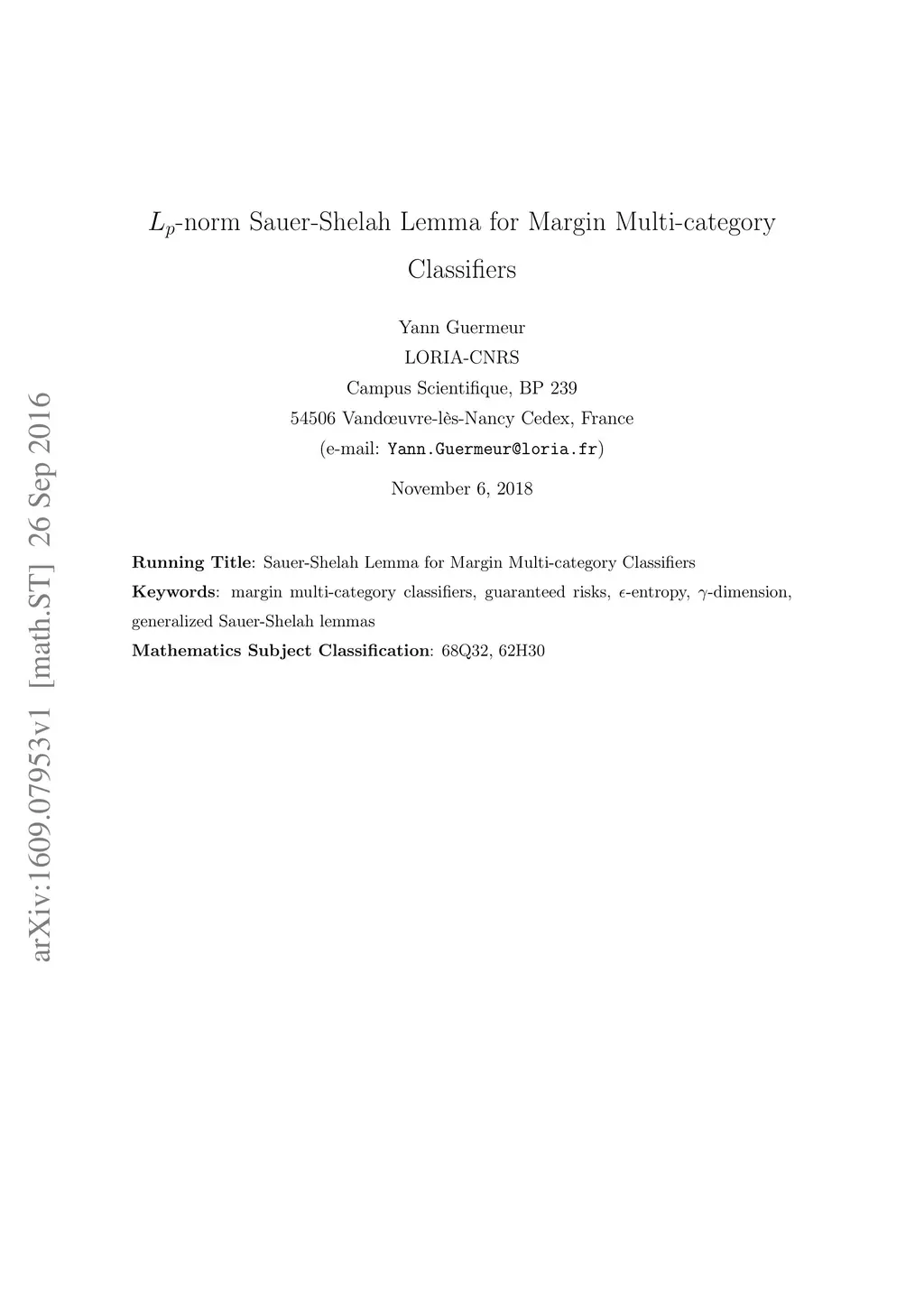 In the framework of agnostic learning, one of the main open problems of the theory of multi-category pattern classification is the characterization of the way the complexity varies with the number C of categories. More precisely, if the classifier is characterized only through minimal learnability hypotheses, then the optimal dependency on C that an upper bound on the probability of error should exhibit is unknown. We consider margin classifiers. They are based on classes of vector-valued functions with one component function per category, and the classes of component functions are uniform Glivenko-Cantelli classes. For these classifiers, an L p-norm Sauer-Shelah lemma is established. It is then used to derive guaranteed risks in the L and L 2-norms. These bounds improve over the state-of-the-art ones with respect to their dependency on C, which is sublinear.