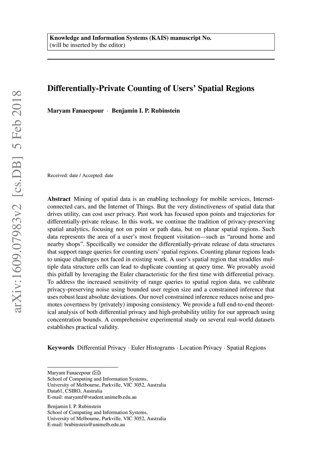 Mining of spatial data is an enabling technology for mobile services, Internet-connected cars, and the Internet of Things. But the very distinctiveness of spatial data that drives utility, can cost user privacy. Past work has focused upon points and trajectories for differentially-private release. In this work, we continue the tradition of privacy-preserving spatial analytics, focusing not on point or path data, but on planar spatial regions. Such data represents the area of a user's most frequent visitation---such as "around home and nearby shops". Specifically we consider the differentially-private release of data structures that support range queries for counting users' spatial regions. Counting planar regions leads to unique challenges not faced in existing work. A user's spatial region that straddles multiple data structure cells can lead to duplicate counting at query time. We provably avoid this pitfall by leveraging the Euler characteristic for the first time with differential privacy. To address the increased sensitivity of range queries to spatial region data, we calibrate privacy-preserving noise using bounded user region size and a constrained inference that uses robust least absolute deviations. Our novel constrained inference reduces noise and promotes covertness by (privately) imposing consistency. We provide a full end-to-end theoretical analysis of both differential privacy and high-probability utility for our approach using concentration bounds. A comprehensive experimental study on several real-world datasets establishes practical validity.