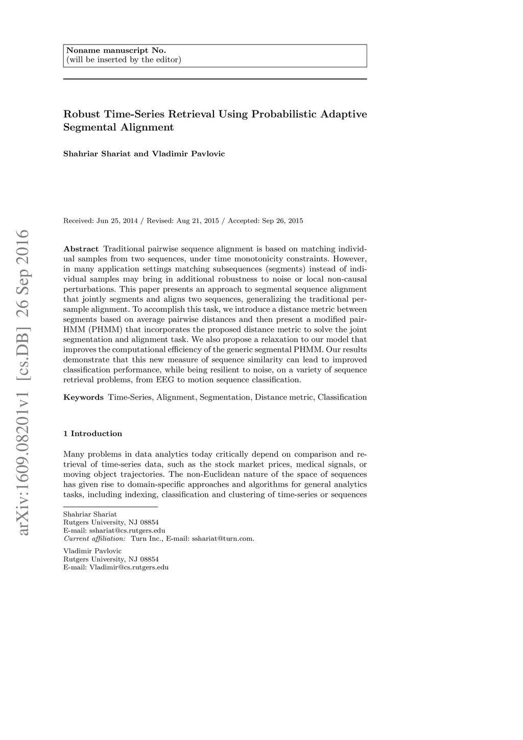 Robust Time-Series Retrieval Using Probabilistic Adaptive Segmental