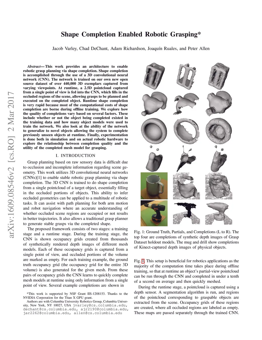 Shape Completion Enabled Robotic Grasping