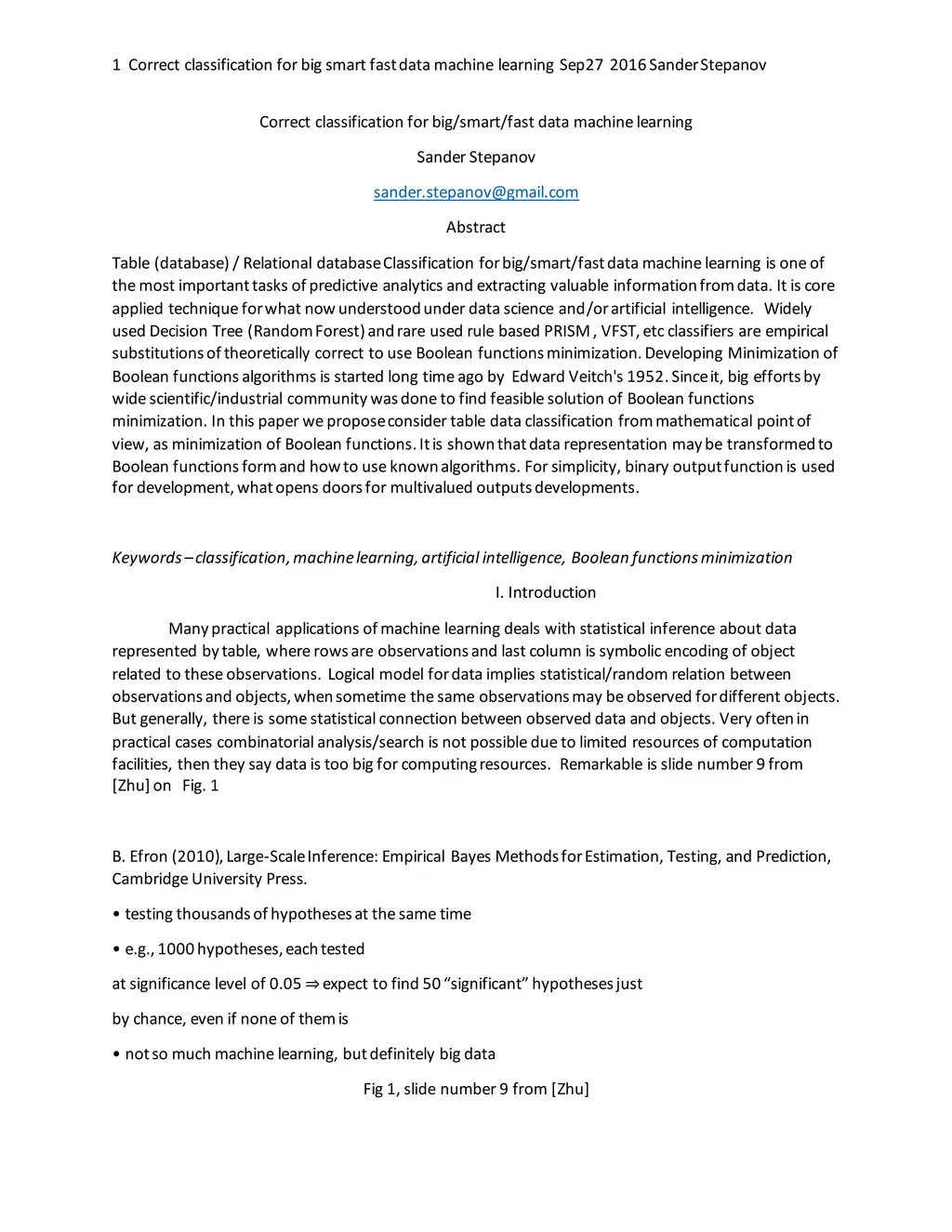 Correct classification for big/smart/fast data machine learning