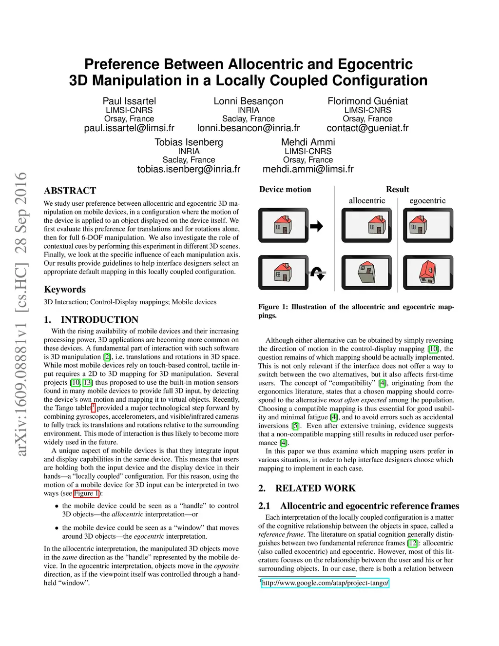 Preference Between Allocentric and Egocentric 3D Manipulation in a