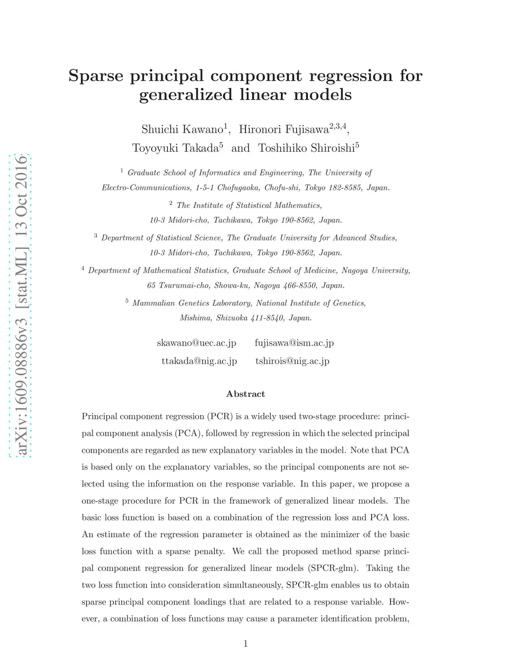 Sparse principal component regression for generalized linear models
