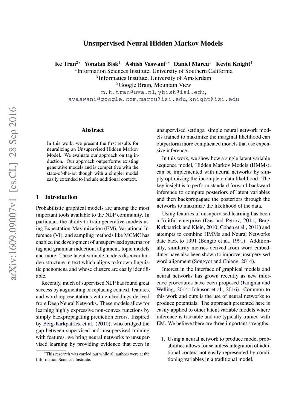 Unsupervised Neural Hidden Markov Models