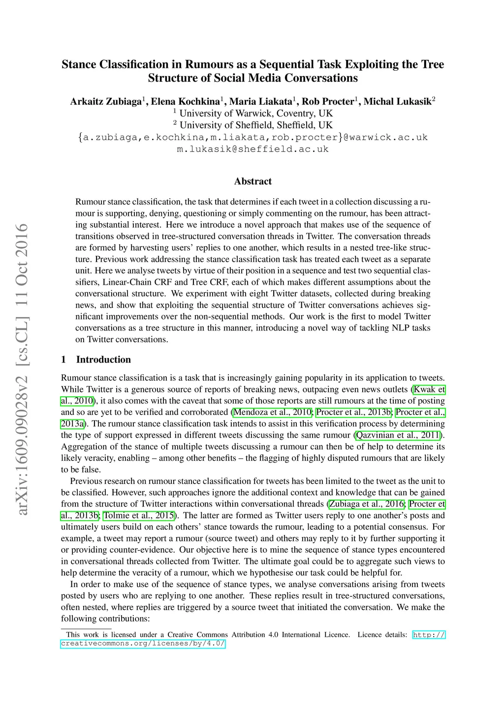 Stance Classification in Rumours as a Sequential Task Exploiting the