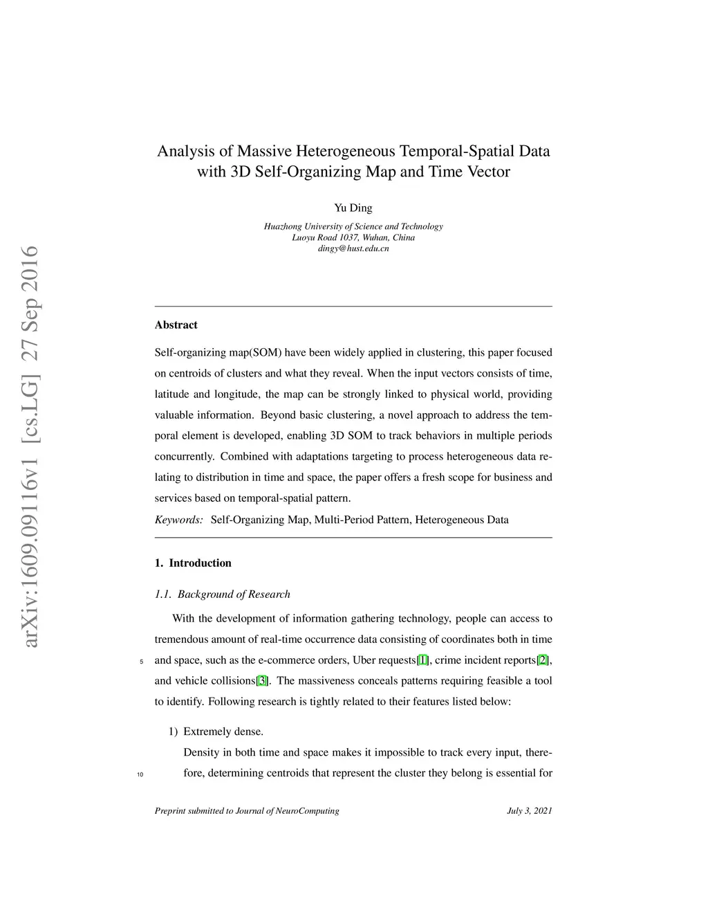 Self-organizing map(SOM) have been widely applied in clustering, this paper focused on centroids of clusters and what they reveal. When the input vectors consists of time, latitude and longitude, the map can be strongly linked to physical world, providing valuable information. Beyond basic clustering, a novel approach to address the temporal element is developed, enabling 3D SOM to track behaviors in multiple periods concurrently. Combined with adaptations targeting to process heterogeneous data relating to distribution in time and space, the paper offers a fresh scope for business and services based on temporal-spatial pattern.