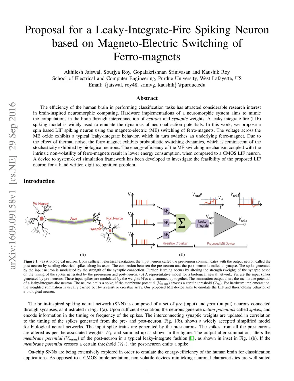 Proposal for a Leaky-Integrate-Fire Spiking Neuron based on