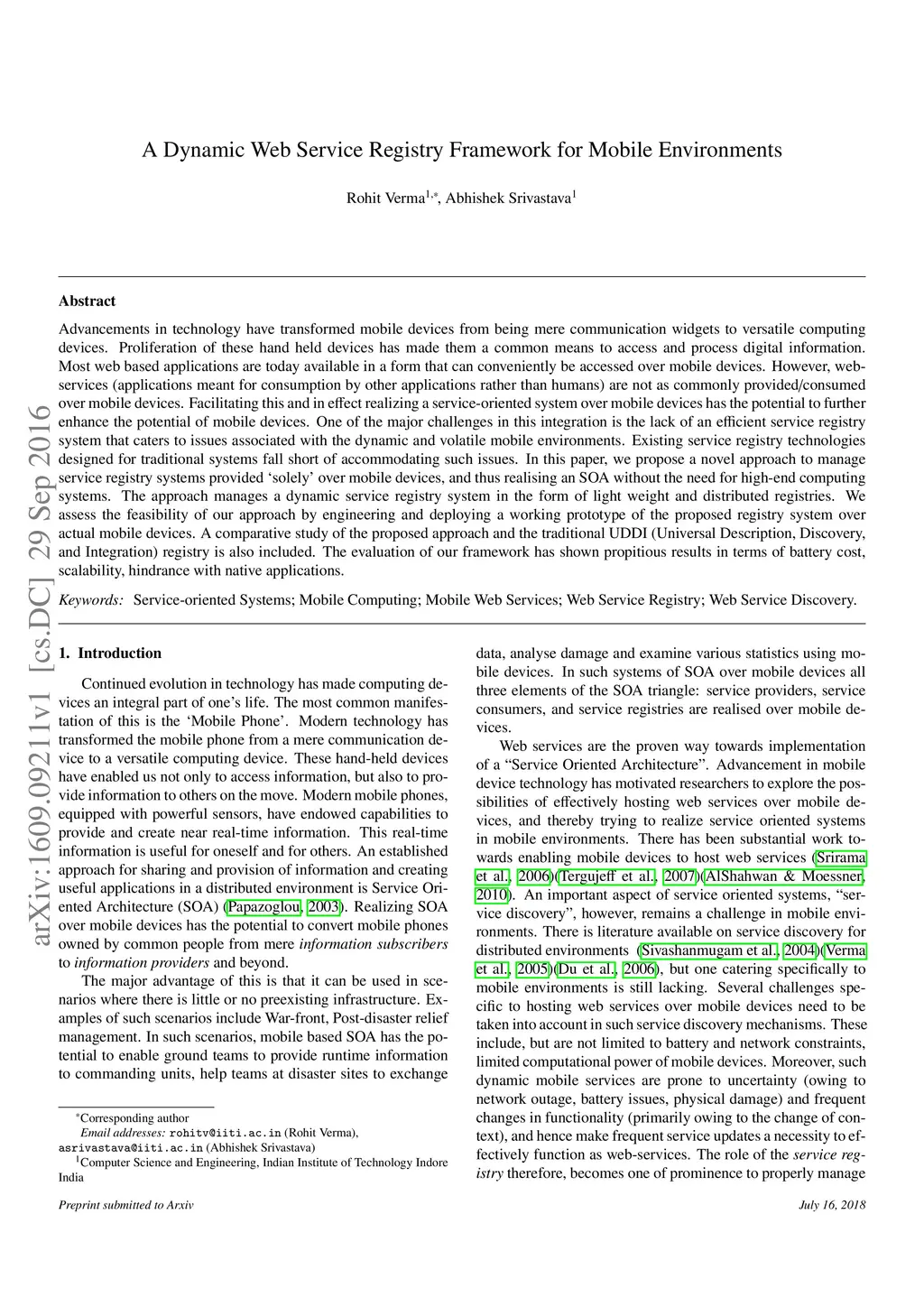 A Dynamic Web Service Registry Framework for Mobile Environments