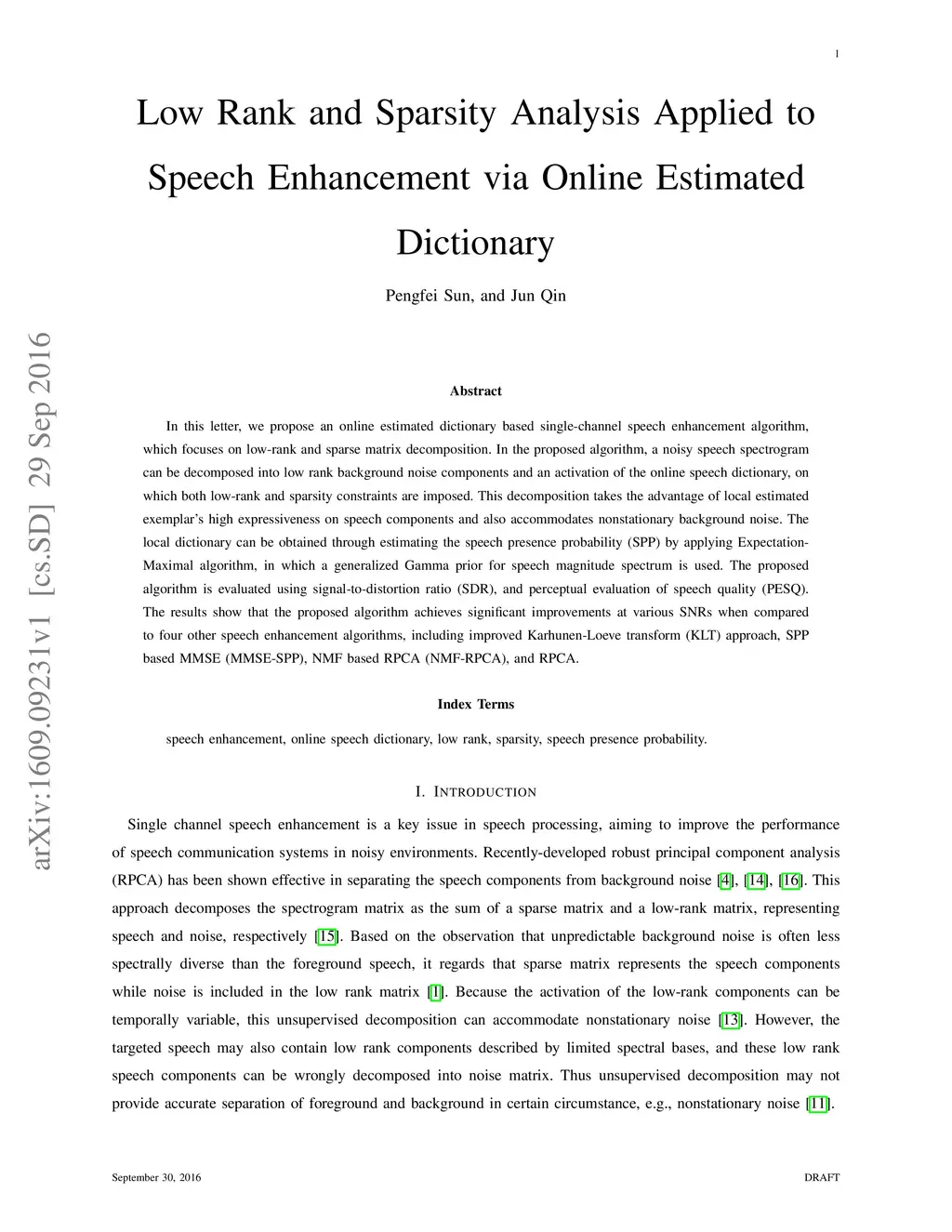 Low Rank and Sparsity Analysis Applied to Speech Enhancement via Online
