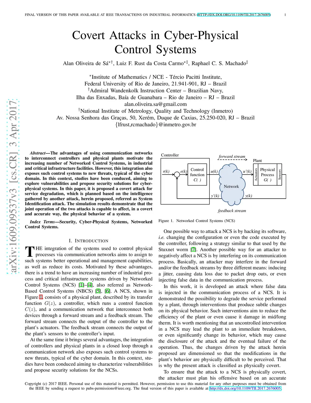 Covert Attacks in Cyber-Physical Control Systems