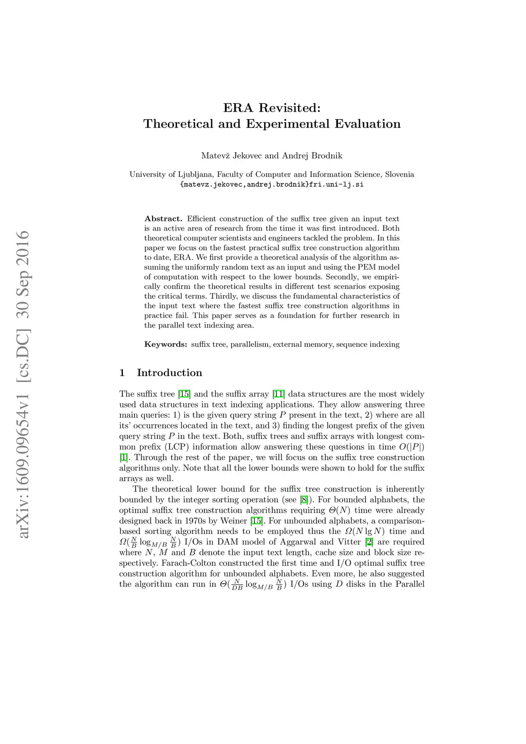 Efficient construction of the suffix tree given an input text is an active area of research from the time it was first introduced. Both theoretical computer scientists and engineers tackled the problem. In this paper we focus on the fastest practical suffix tree construction algorithm to date, ERA. We first provide a theoretical analysis of the algorithm assuming the uniformly random text as an input and using the PEM model of computation with respect to the lower bounds. Secondly, we empirically confirm the theoretical results in different test scenarios exposing the critical terms. Thirdly, we discuss the fundamental characteristics of the input text where the fastest suffix tree construction algorithms in practice fail. This paper serves as a foundation for further research in the parallel text indexing area.