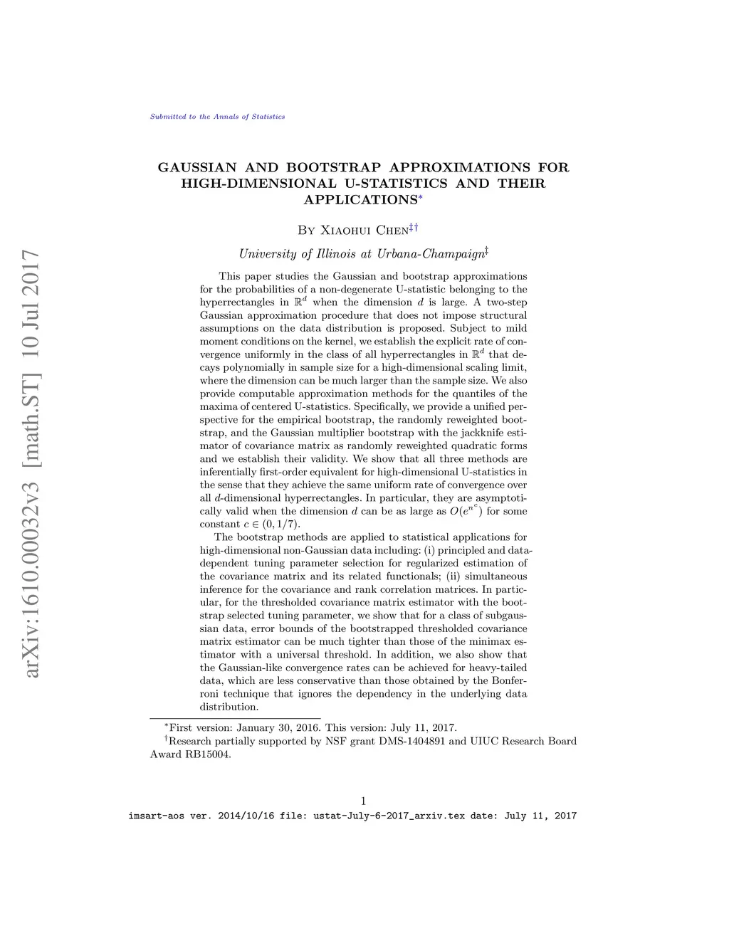 This paper studies the Gaussian and bootstrap approximations for the probabilities of a non-degenerate U-statistic belonging to the hyperrectangles in when the dimension is large. A two-step Gaussian approximation procedure that does not impose structural assumptions on the data distribution is proposed. Subject to mild moment conditions on the kernel, we establish the explicit rate of convergence uniformly in the class of all hyperrectangles in that decays polynomially in sample size for a high-dimensional scaling limit, where the dimension can be much larger than the sample size. We also provide computable approximation methods for the quantiles of the maxima of centered U-statistics. Specifically, we provide a unified perspective for the empirical bootstrap, the randomly reweighted bootstrap, and the Gaussian multiplier bootstrap with the jackknife estimator of covariance matrix as randomly reweighted quadratic forms and we establish their validity. We show that all three methods are inferentially first-order equivalent for high-dimensional U-statistics in the sense that they achieve the same uniform rate of convergence over all -dimensional hyperrectangles. In particular, they are asymptotically valid when the dimension can be as large as for some constant . (Full abstract can be found in the paper.)