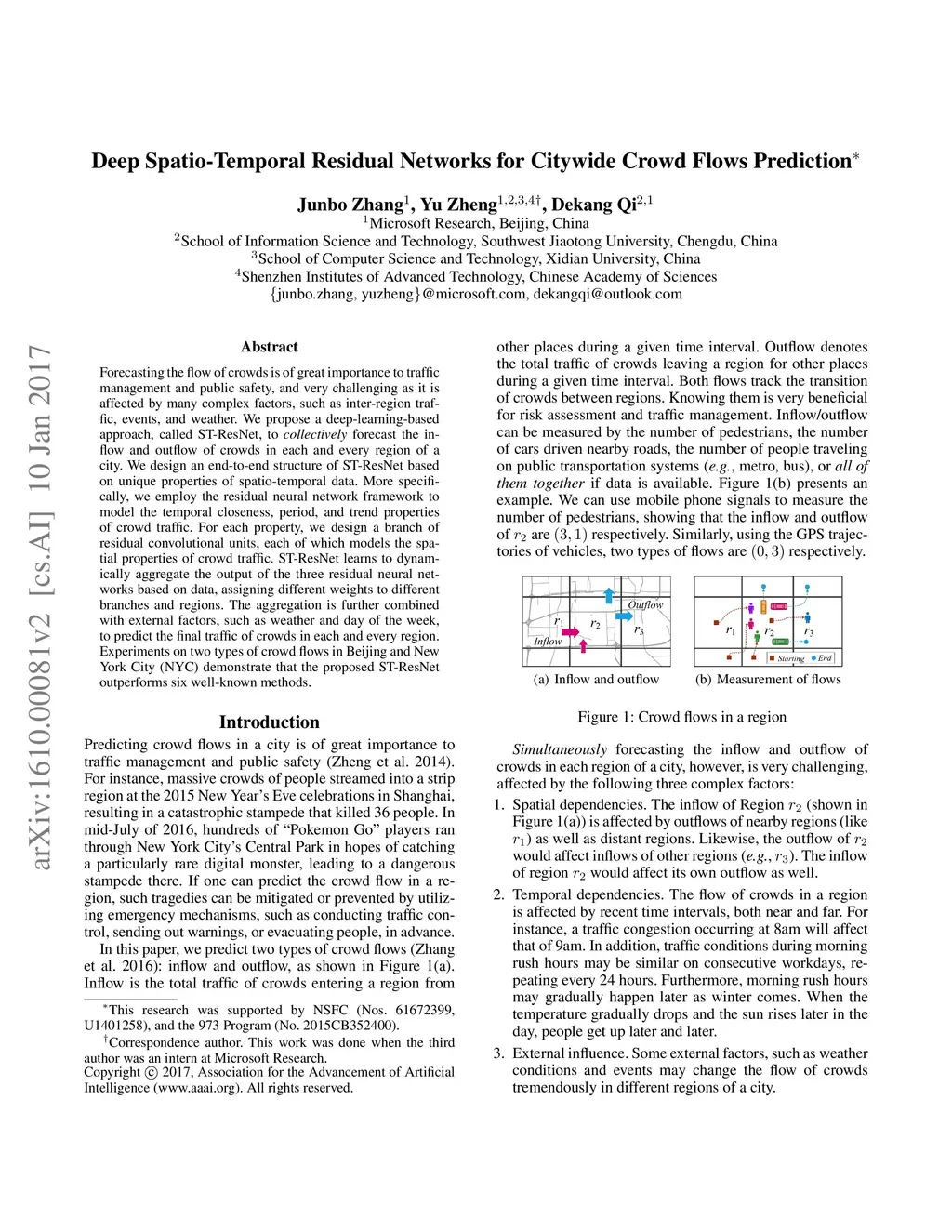 Deep Spatio-Temporal Residual Networks for Citywide Crowd Flows