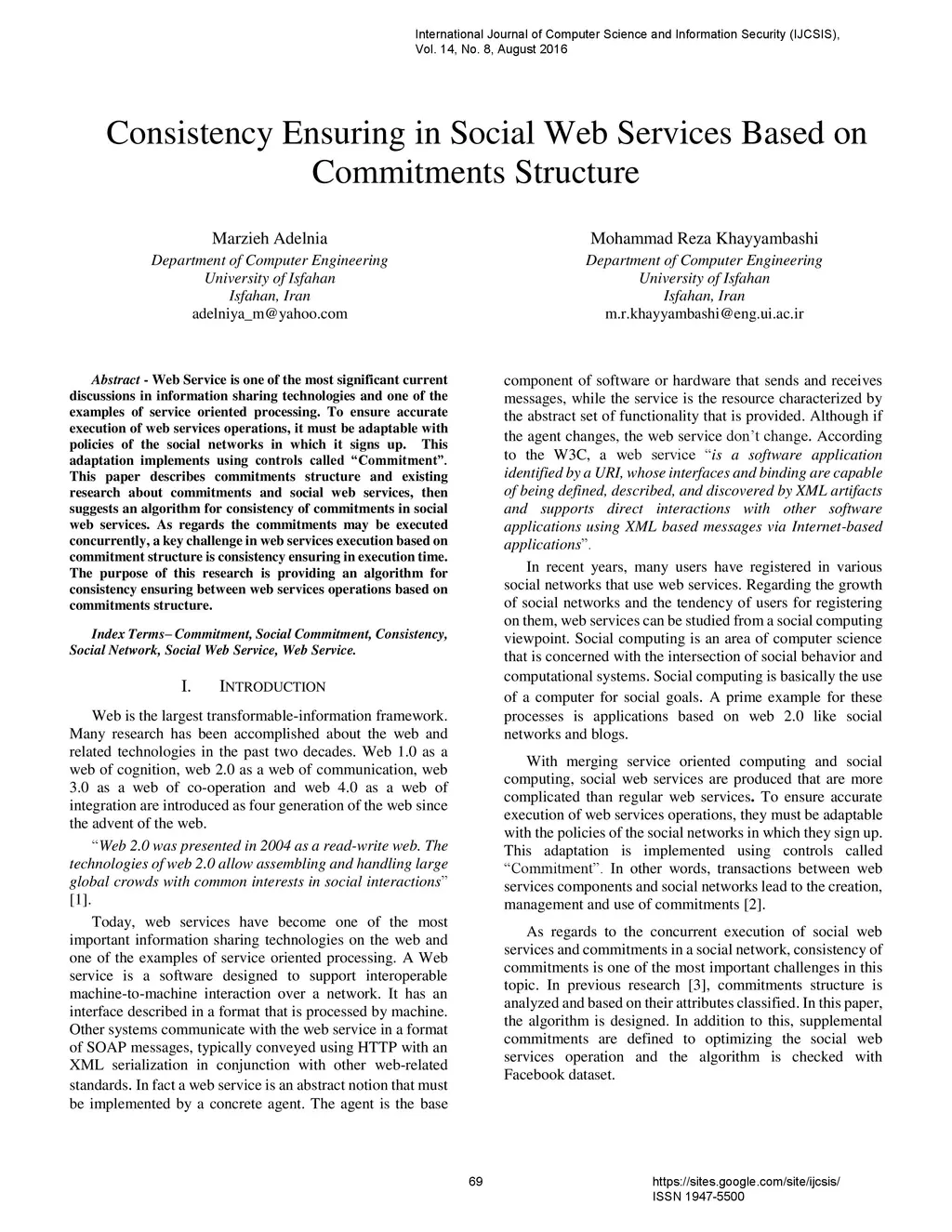Web Service is one of the most significant current discussions in information sharing technologies and one of the examples of service oriented processing. To ensure accurate execution of web services operations, it must be adaptable with policies of the social networks in which it signs up. This adaptation implements using controls called 'Commitment'. This paper describes commitments structure and existing research about commitments and social web services, then suggests an algorithm for consistency of commitments in social web services. As regards the commitments may be executed concurrently, a key challenge in web services execution based on commitment structure is consistency ensuring in execution time. The purpose of this research is providing an algorithm for consistency ensuring between web services operations based on commitments structure.