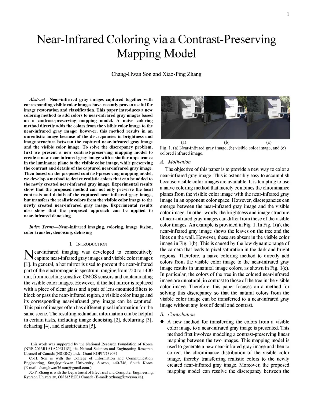 Near-Infrared Coloring via a Contrast-Preserving Mapping Model