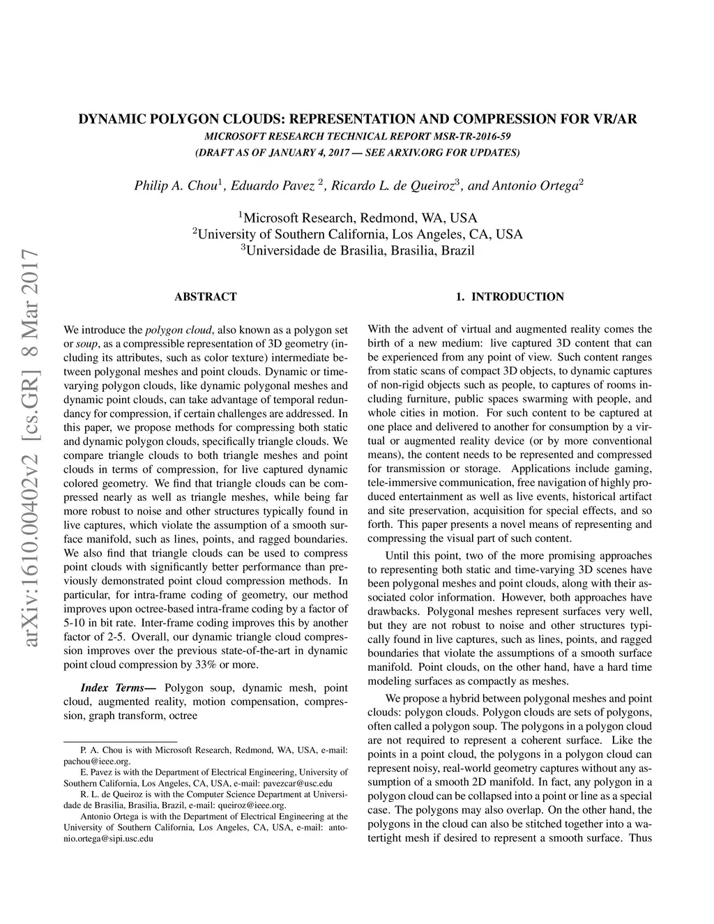 Dynamic Polygon Clouds: Representation and Compression for VR/AR