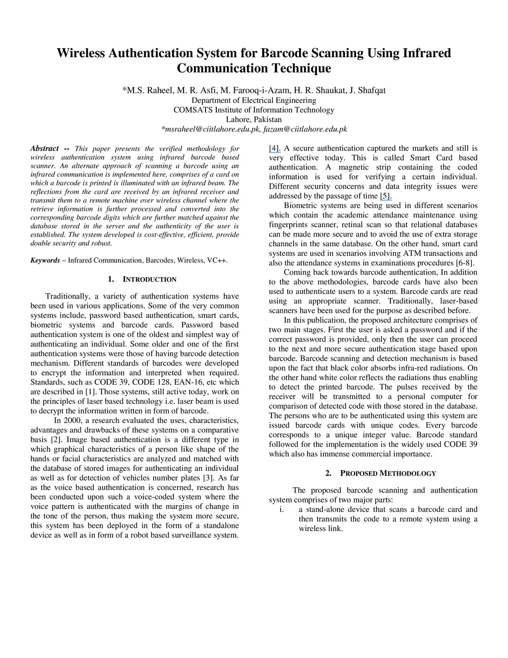 Wireless Authentication System for Barcode Scanning Using Infrared