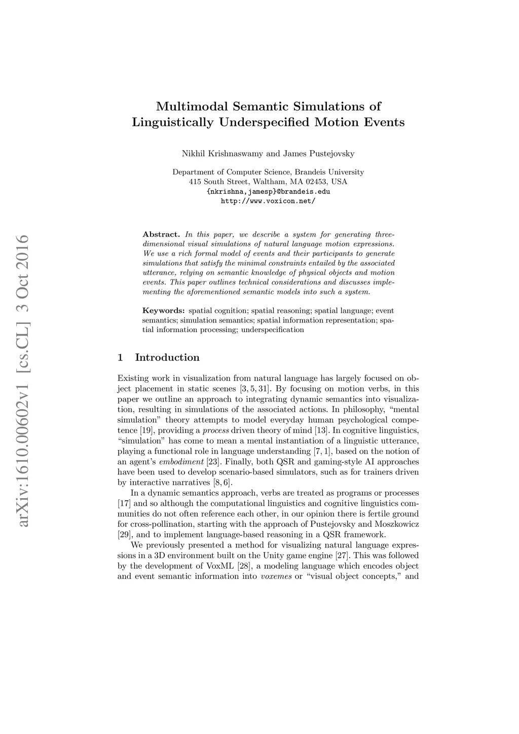 Multimodal Semantic Simulations of Linguistically Underspecified Motion