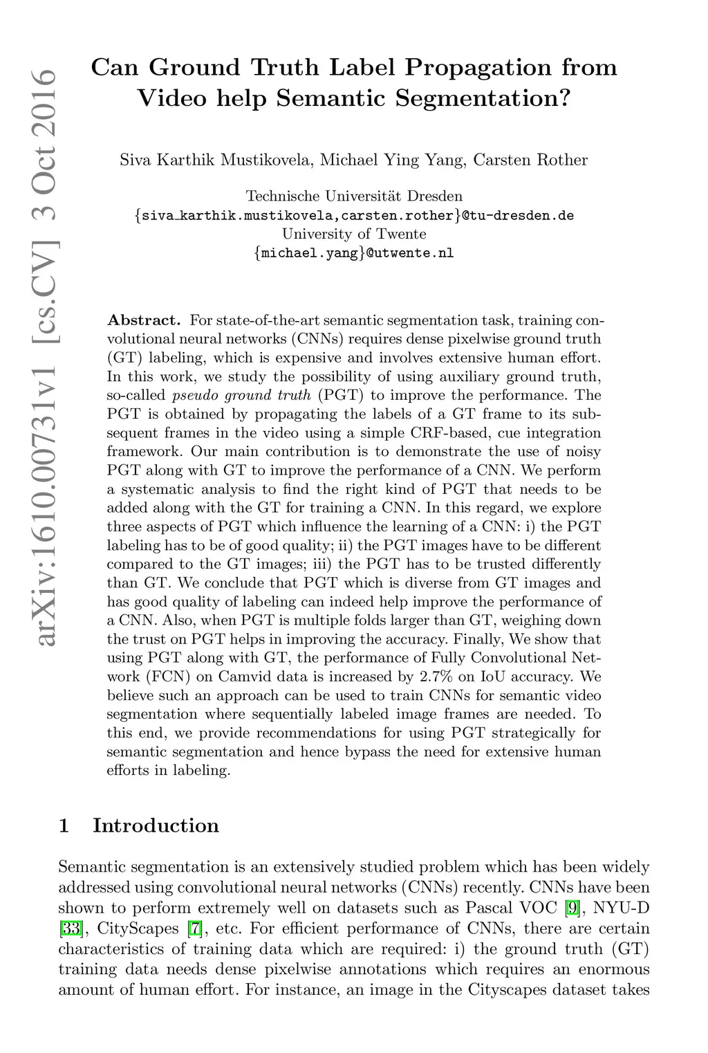 For state-of-the-art semantic segmentation task, training convolutional neural networks (CNNs) requires dense pixelwise ground truth (GT) labeling, which is expensive and involves extensive human effort. In this work, we study the possibility of using auxiliary ground truth, so-called \textit{pseudo ground truth} (PGT) to improve the performance. The PGT is obtained by propagating the labels of a GT frame to its subsequent frames in the video using a simple CRF-based, cue integration framework. Our main contribution is to demonstrate the use of noisy PGT along with GT to improve the performance of a CNN. We perform a systematic analysis to find the right kind of PGT that needs to be added along with the GT for training a CNN. In this regard, we explore three aspects of PGT which influence the learning of a CNN: i) the PGT labeling has to be of good quality; ii) the PGT images have to be different compared to the GT images; iii) the PGT has to be trusted differently than GT. We conclude that PGT which is diverse from GT images and has good quality of labeling can indeed help improve the performance of a CNN. Also, when PGT is multiple folds larger than GT, weighing down the trust on PGT helps in improving the accuracy. Finally, We show that using PGT along with GT, the performance of Fully Convolutional Network (FCN) on Camvid data is increased by on IoU accuracy. We believe such an approach can be used to train CNNs for semantic video segmentation where sequentially labeled image frames are needed. To this end, we provide recommendations for using PGT strategically for semantic segmentation and hence bypass the need for extensive human efforts in labeling.
