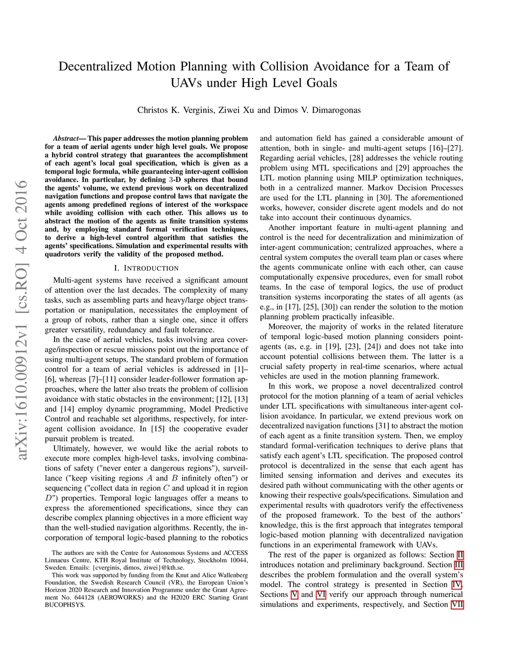 Decentralized Motion Planning with Collision Avoidance for a Team of