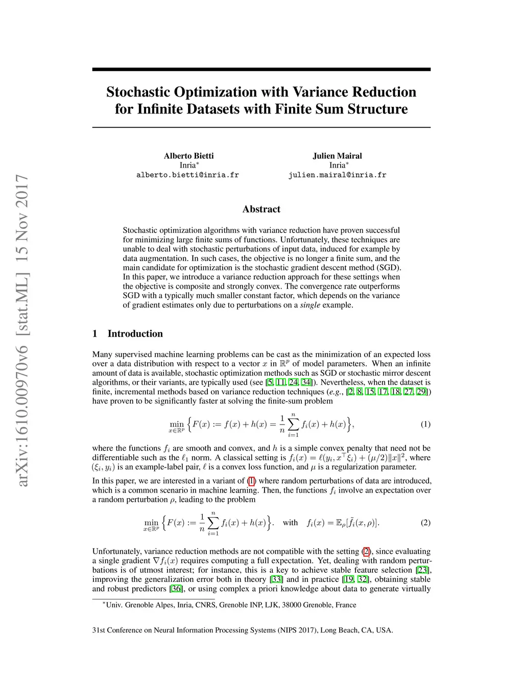 Stochastic Optimization with Variance Reduction for Infinite Datasets