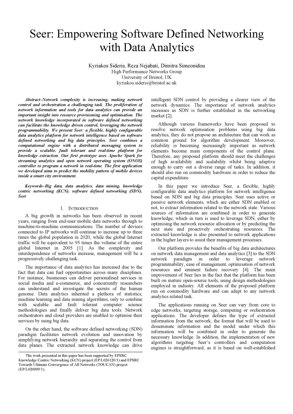 Seer: Empowering Software Defined Networking with Data Analytics