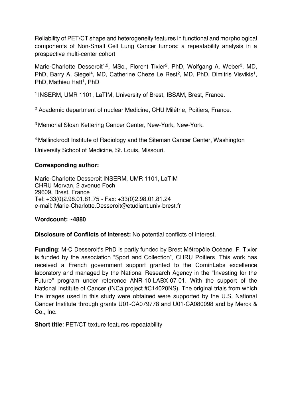 repeatability analysis in a prospective multi-center cohort