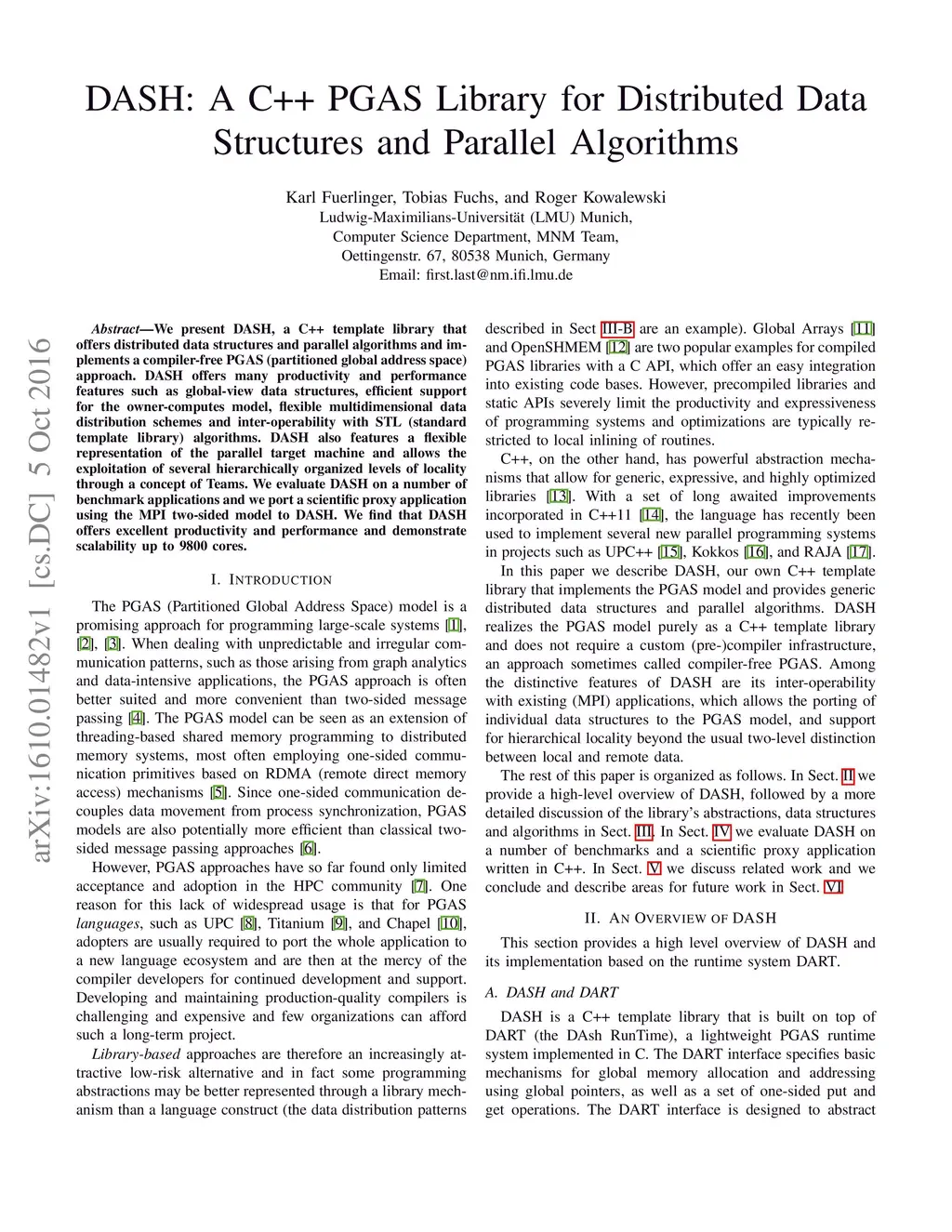 DASH: A C++ PGAS Library for Distributed Data Structures and Parallel