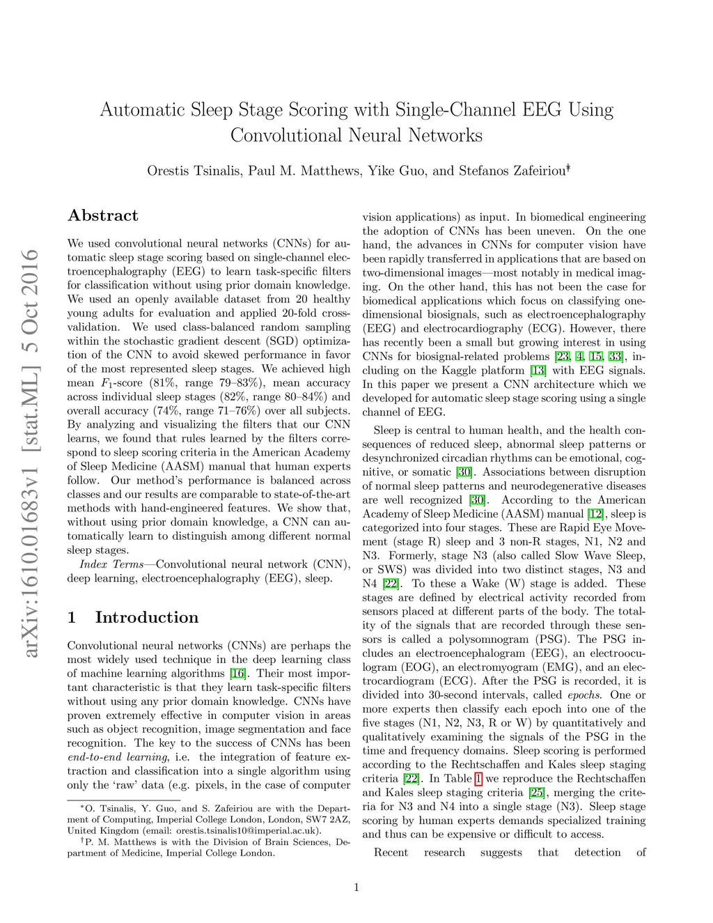 Automatic Sleep Stage Scoring with Single-Channel EEG Using