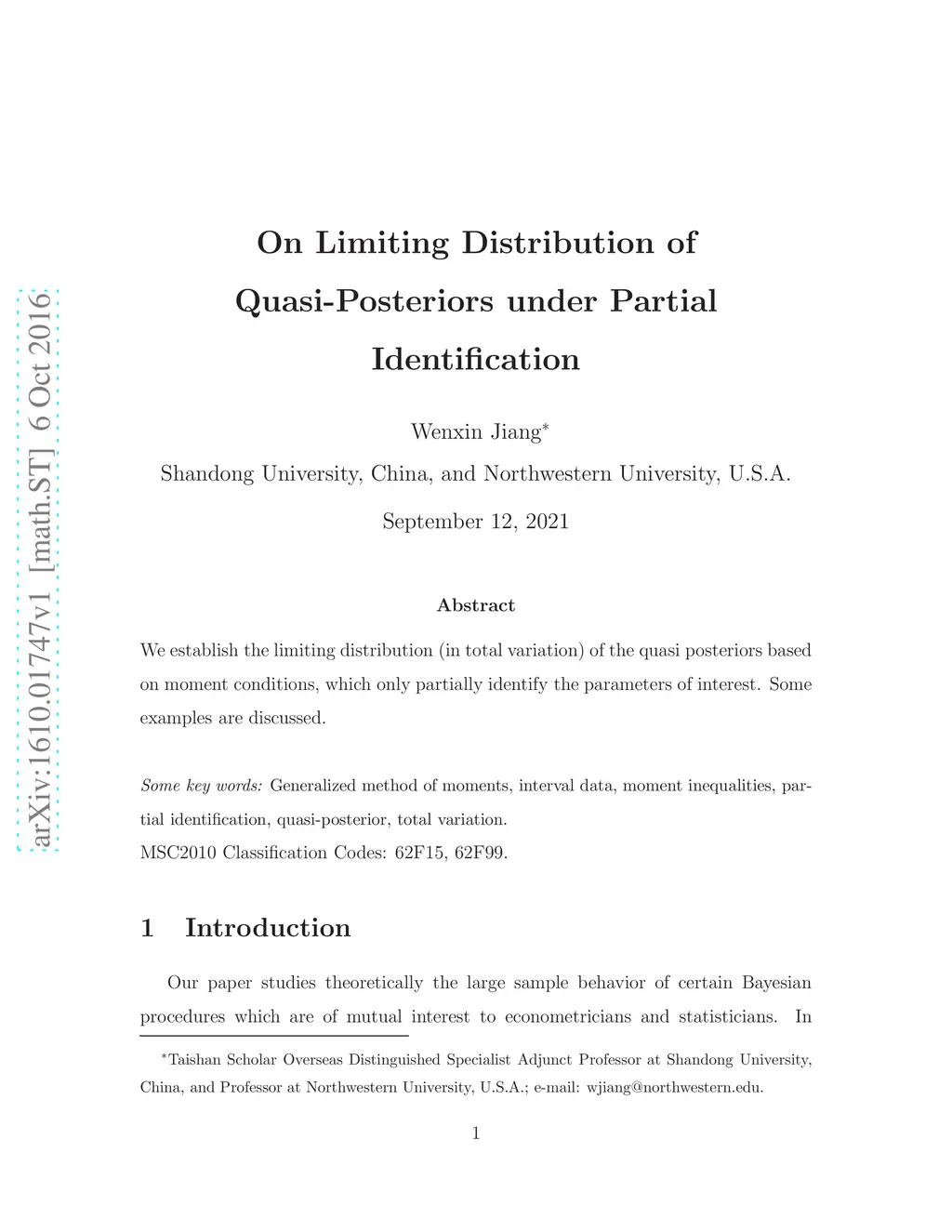 On Limiting Distribution of Quasi-Posteriors under Partial