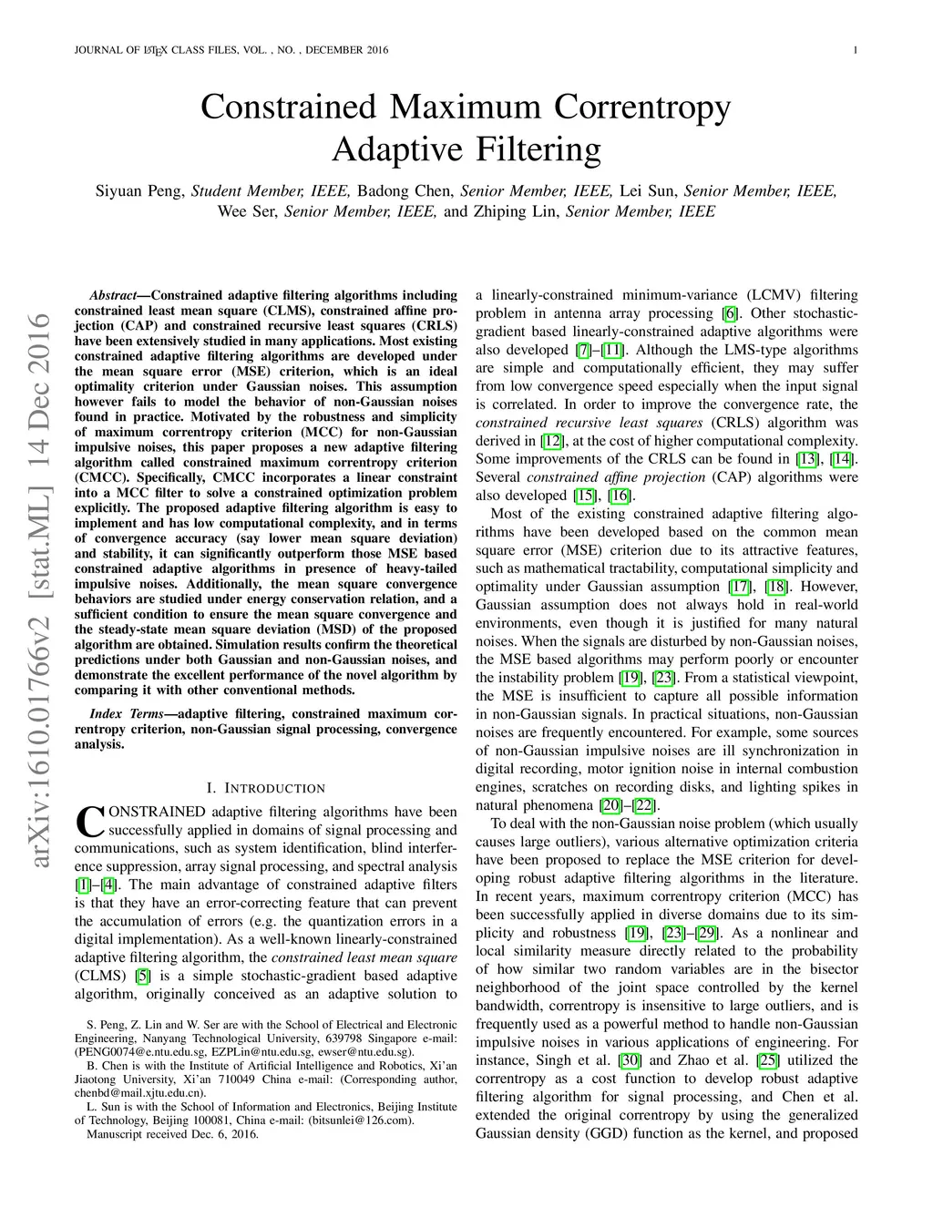 Constrained adaptive filtering algorithms inculding constrained least mean square (CLMS), constrained affine projection (CAP) and constrained recursive least squares (CRLS) have been extensively studied in many applications. Most existing constrained adaptive filtering algorithms are developed under mean square error (MSE) criterion, which is an ideal optimality criterion under Gaussian noises. This assumption however fails to model the behavior of non-Gaussian noises found in practice. Motivated by the robustness and simplicity of maximum correntropy criterion (MCC) in non-Gaussian impulsive noises, this paper proposes a new adaptive filtering algorithm called constrained maximum correntropy criterion (CMCC). Specifically, CMCC incorporates a linear constraint into a MCC filter to solve a constrained optimization problem explicitly. The proposed adaptive filtering algorithm is easy to implement and has low computational complexity, and in terms of convergence accuracy (say lower mean square deviation) and stability, can significantly outperform those MSE based constrained adaptive algorithms in presence of heavy-tailed impulsive noises. Additionally, the mean square convergence behaviors are studied under energy conservation relation, and a sufficient condition to ensure the mean square convergence and the steady-state mean square deviation (MSD) of the proposed algorithm are obtained. Simulation results confirm the theoretical predictions under both Gaussian and non- Gaussian noises, and demonstrate the excellent performance of the novel algorithm by comparing it with other conventional methods.