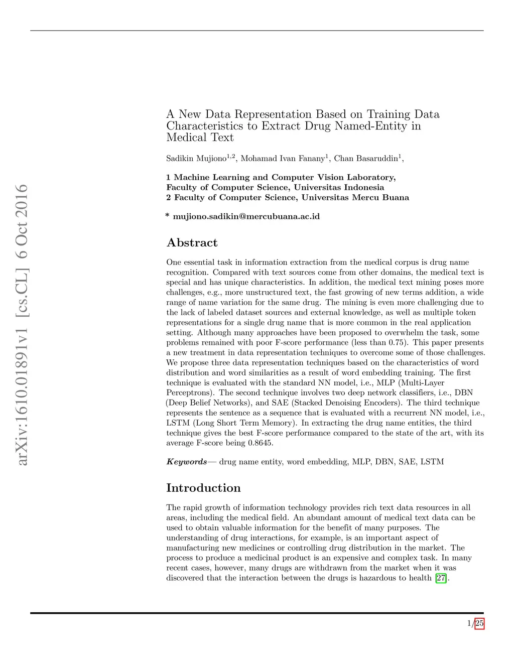 Extract Drug Named-Entity in Medical Text