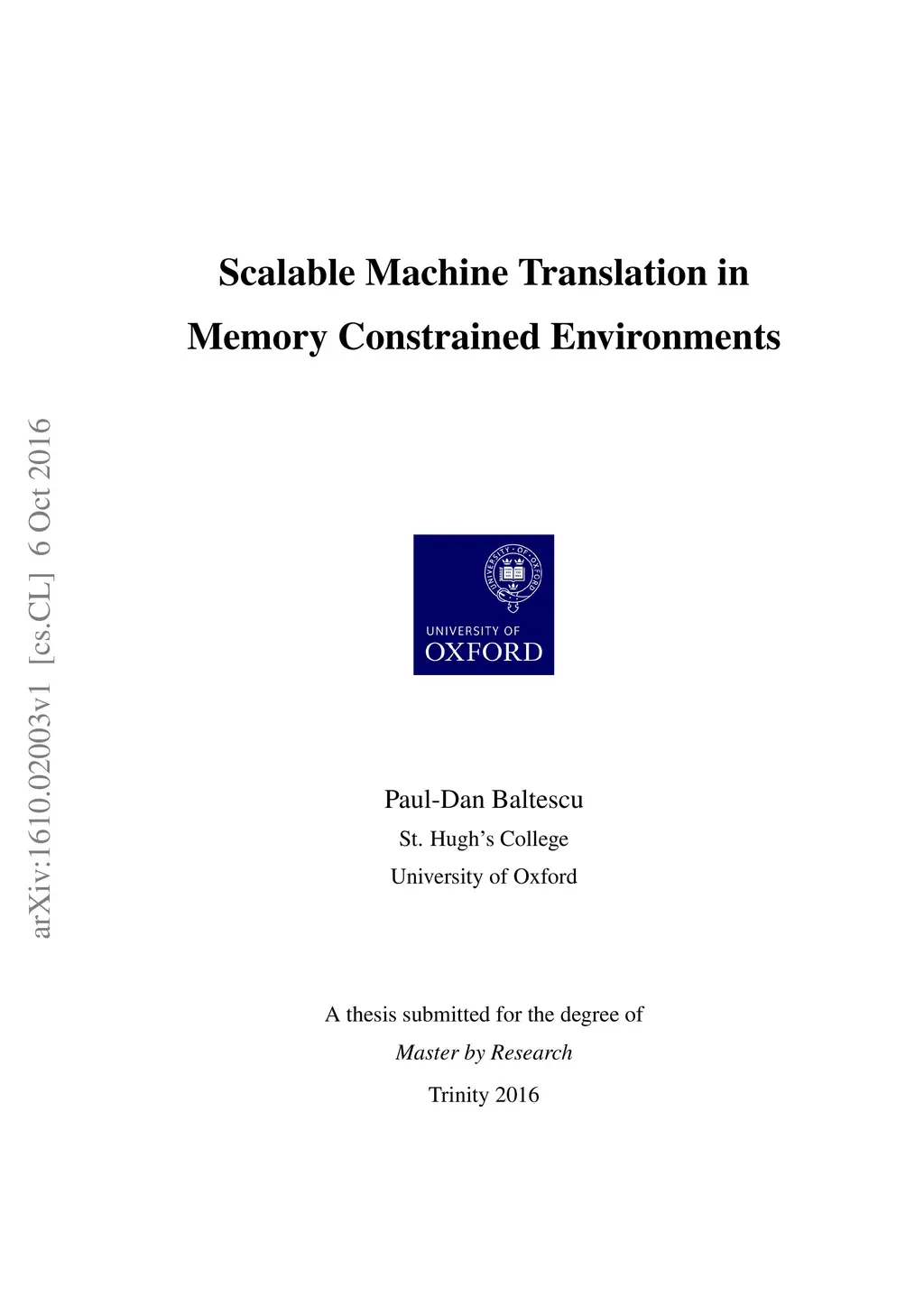 Machine translation is the discipline concerned with developing automated tools for translating from one human language to another. Statistical machine translation (SMT) is the dominant paradigm in this field. In SMT, translations are generated by means of statistical models whose parameters are learned from bilingual data. Scalability is a key concern in SMT, as one would like to make use of as much data as possible to train better translation systems. In recent years, mobile devices with adequate computing power have become widely available. Despite being very successful, mobile applications relying on NLP systems continue to follow a client-server architecture, which is of limited use because access to internet is often limited and expensive. The goal of this dissertation is to show how to construct a scalable machine translation system that can operate with the limited resources available on a mobile device. The main challenge for porting translation systems on mobile devices is memory usage. The amount of memory available on a mobile device is far less than what is typically available on the server side of a client-server application. In this thesis, we investigate alternatives for the two components which prevent standard translation systems from working on mobile devices due to high memory usage. We show that once these standard components are replaced with our proposed alternatives, we obtain a scalable translation system that can work on a device with limited memory.