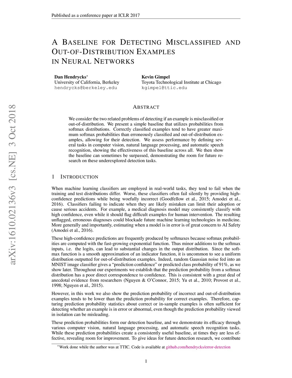 A Baseline for Detecting Misclassified and Out-of-Distribution Examples