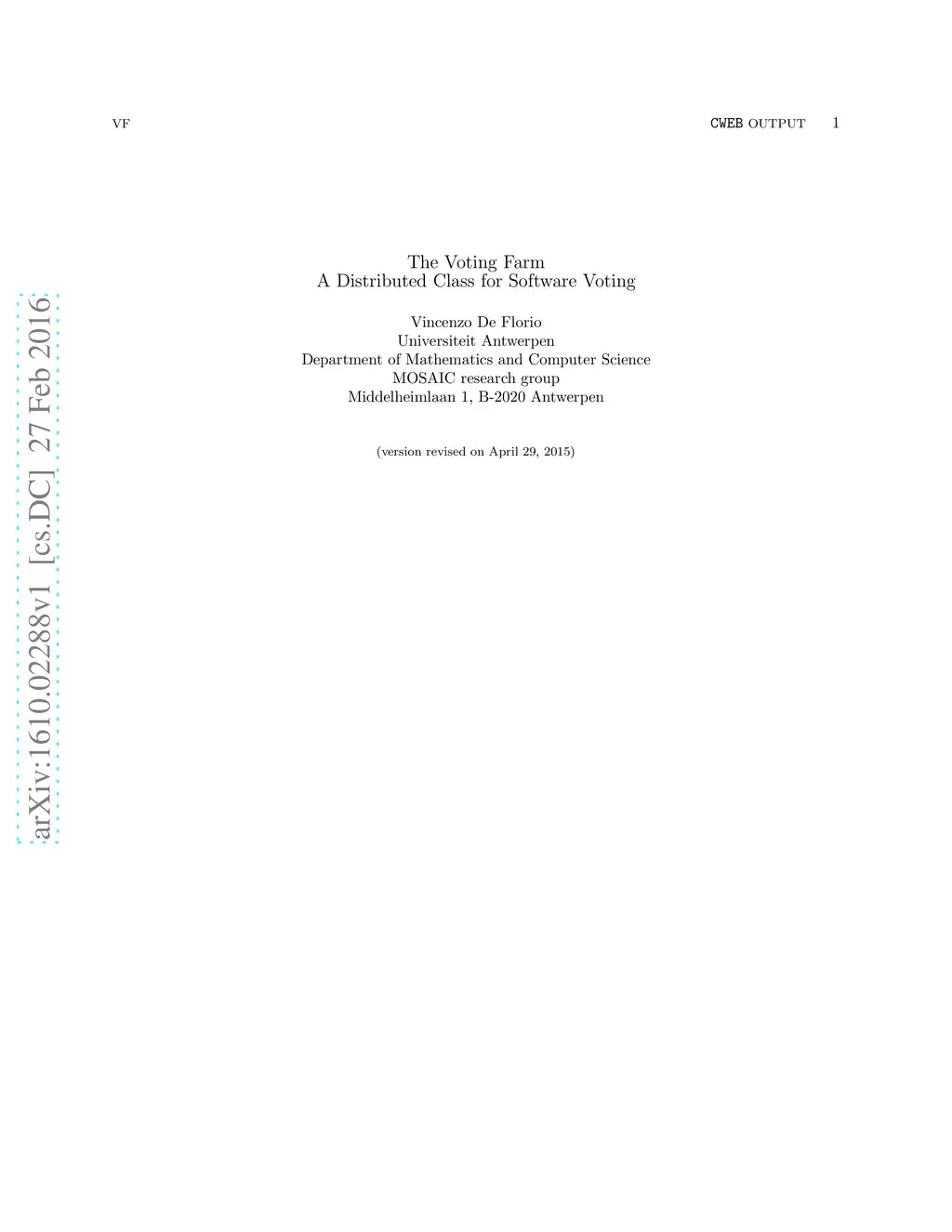 This document describes a class of C functions implementing a distributed software voting mechanism for EPX or similar message passing multi-threaded environments. Such a tool may be used for example, to set up a restoring organ, i.e., an NMR (i.e., N-module redundant) system with N voters. In order to describe the tool we start defining its basic building block, the voter. A voter is defined as a software module connected to one user module and to a farm of fellow voters arranged into a clique. By means of the functions in the class the user module is able: to create a static "picture" of the voting farm, needed for the set up of the clique; to instantiate the local voter; to send input or control messages to that voter. No interlocutor is needed other than the local voter. The other user modules are supposed to create coherent pictures and instances of voters on other nodes of the machine and to manage consistently the task of their local intermediary. All technicalities concerning the set up of the clique and the exchange of messages between the voters are completely transparent to the user module. In the following the basic functionalities of the VotingFarm class will be discussed, namely how to set up a "passive farm", or a non-alive topological representation of a yet-to-be-activated voting farm; how to initiate the voting farm; how to control the farm.