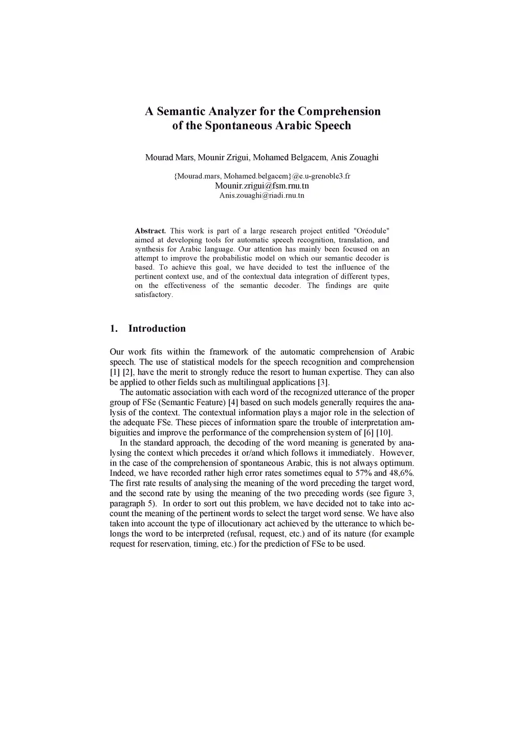 A Semantic Analyzer for the Comprehension of the Spontaneous Arabic