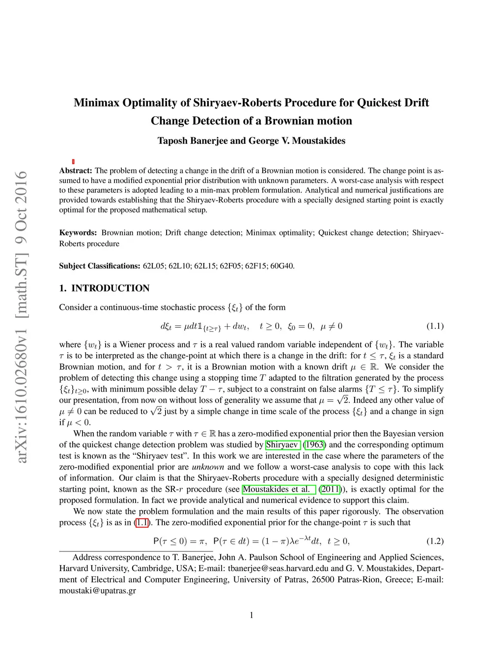 Change Detection of a Brownian motion