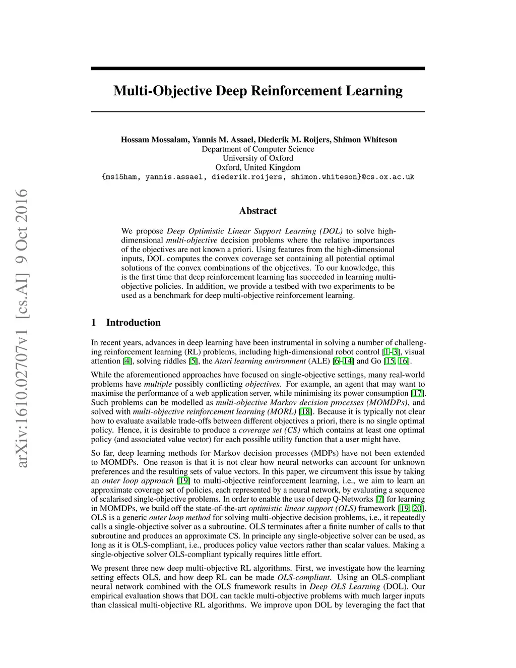 Multi-Objective Deep Reinforcement Learning