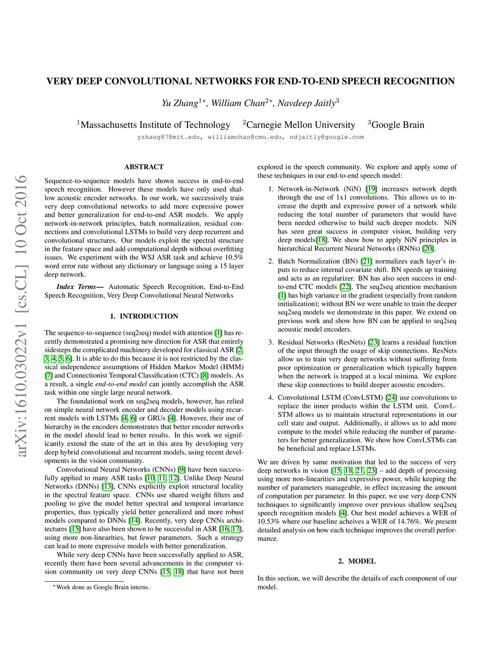 Very Deep Convolutional Networks for End-to-End Speech Recognition