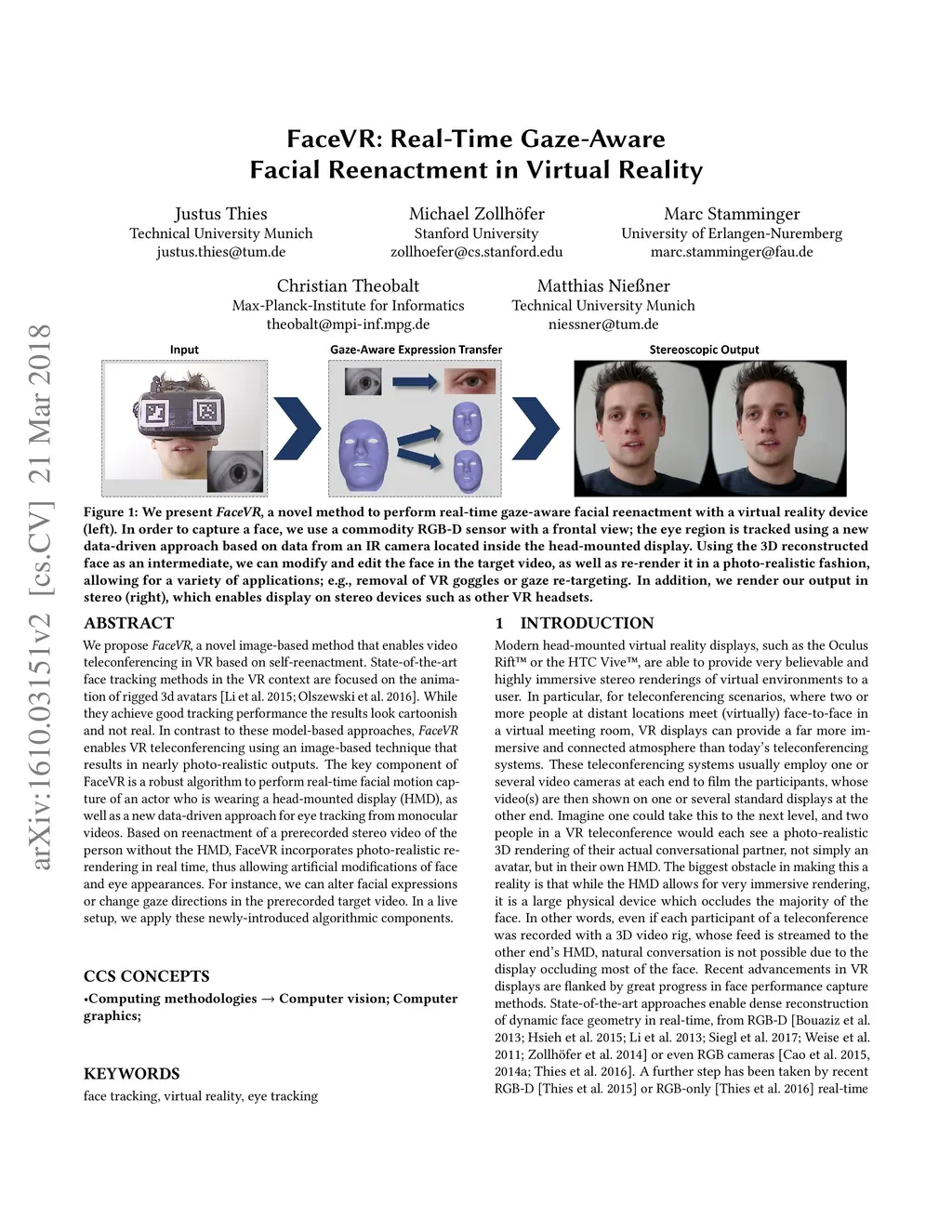 FaceVR: Real-Time Facial Reenactment and Eye Gaze Control in Virtual