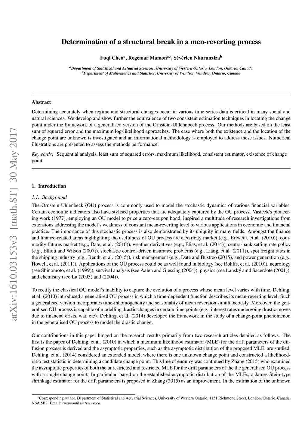 Determining accurately when regime and structural changes occur in various time-series data is critical in many social and natural sciences. We develop and show further the equivalence of two consistent estimation techniques in locating the change point under the framework of a generalised version of the Ornstein-Uhlehnbeck process. Our methods are based on the least sum of squared error and the maximum log-likelihood approaches. The case where both the existence and the location of the change point are unknown is investigated and an informational methodology is employed to address these issues. Numerical illustrations are presented to assess the performance of the methods.