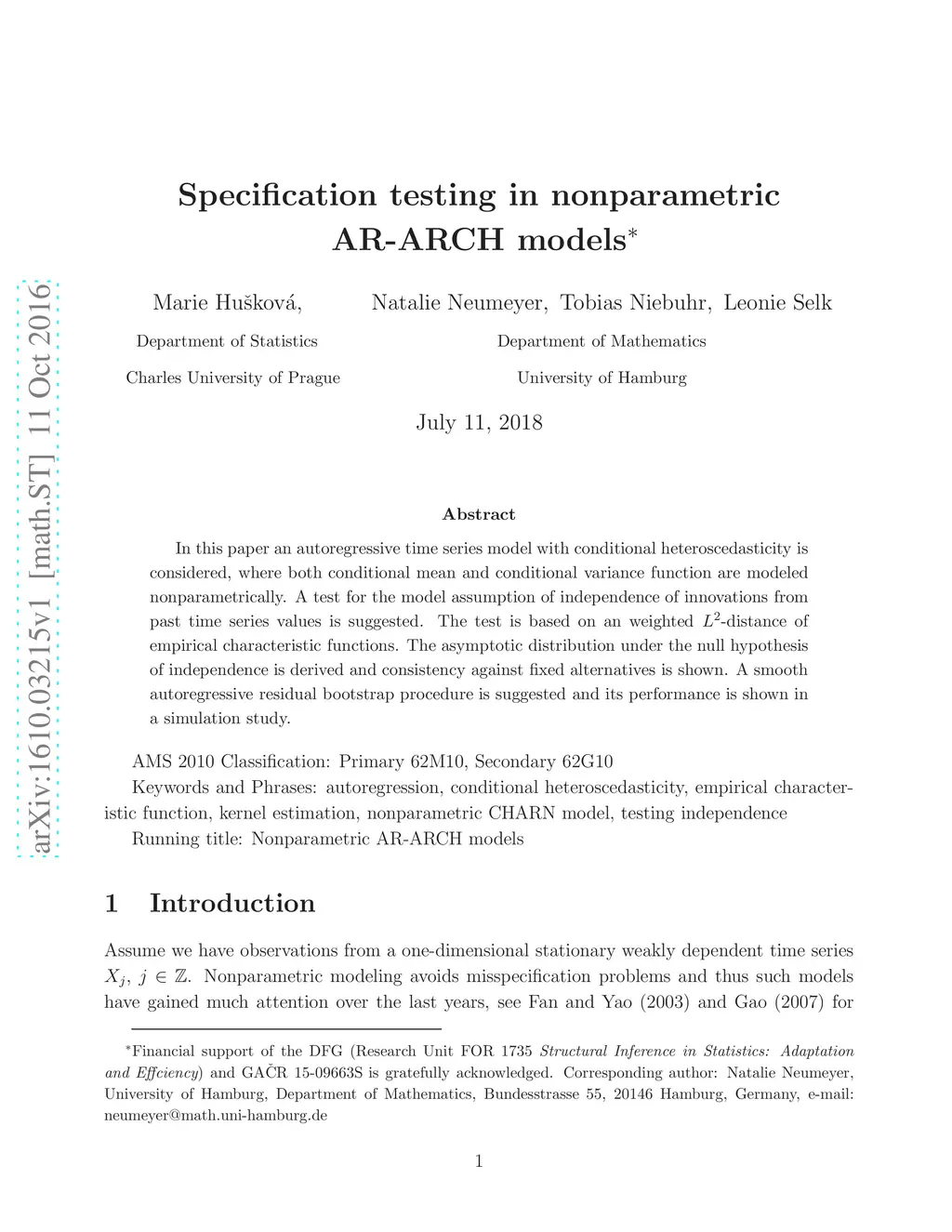 Specification testing in nonparametric AR-ARCH models