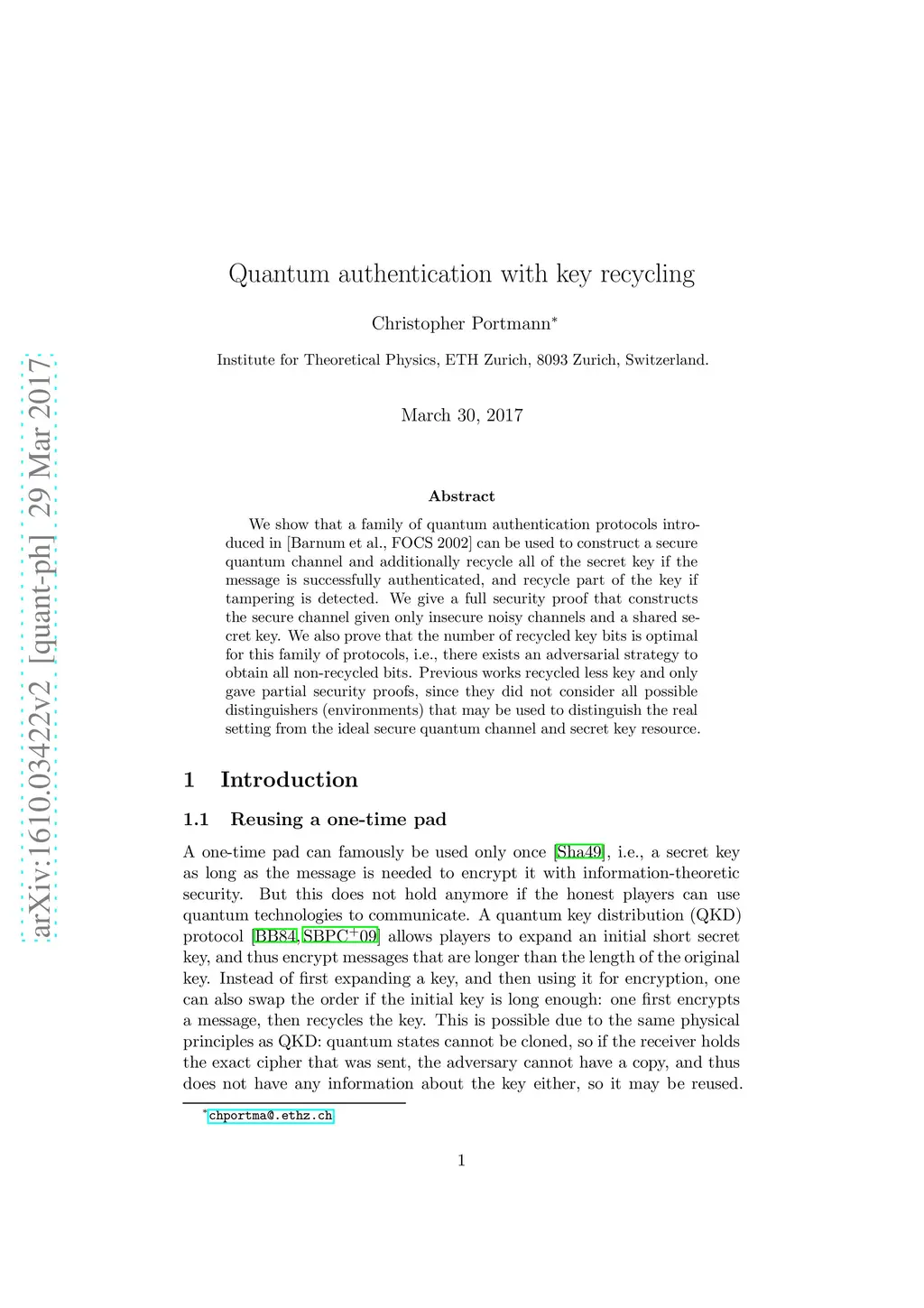 We show that a family of quantum authentication protocols introduced in [Barnum et al., FOCS 2002] can be used to construct a secure quantum channel and additionally recycle all of the secret key if the message is successfully authenticated, and recycle part of the key if tampering is detected. We give a full security proof that constructs the secure channel given only insecure noisy channels and a shared secret key. We also prove that the number of recycled key bits is optimal for this family of protocols, i.e., there exists an adversarial strategy to obtain all non-recycled bits. Previous works recycled less key and only gave partial security proofs, since they did not consider all possible distinguishers (environments) that may be used to distinguish the real setting from the ideal secure quantum channel and secret key resource.